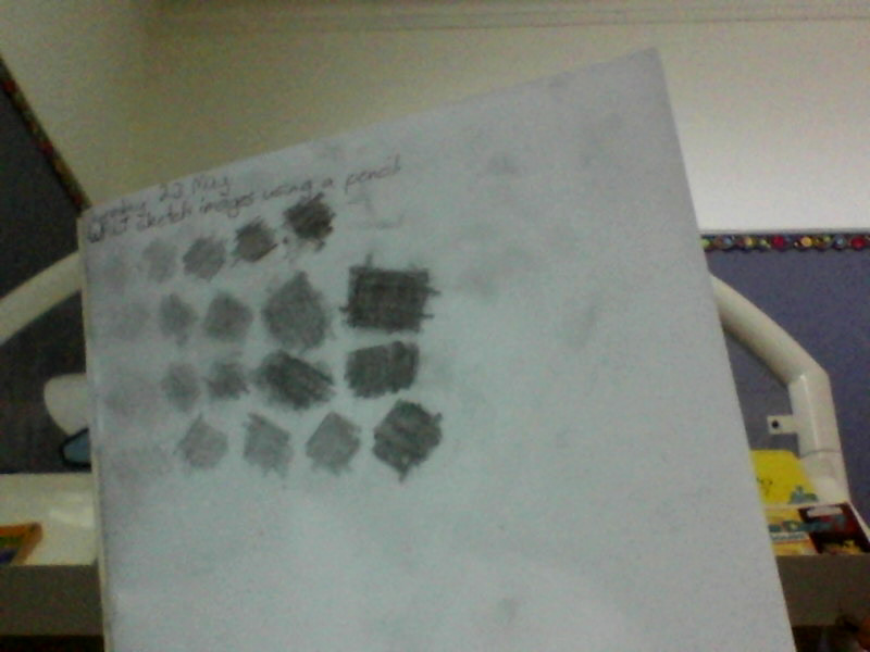 WALT sketch images using a pencil. First Mrs. Richardson showed us a video about shading. Then she gave us sketching pencils and taught us how to use it for shading. Next we practice, and practiced, and practiced until we thought it was great. I sketched four rows of five kinds of shades in it. Which row do you like best?